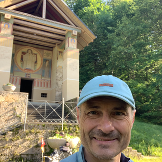 July 6 - I would ride 145 km today as the path took us through a forest along the Danube until Beuron (km20) where I was pleasantly surprised by the small Chapel that looks as if it had been built just for cyclists. I then passed the famous tunnel in the rock (after 40km) and was surprised by the "foot" with the nail - the toilet seemed conveniently located in the circumstances.